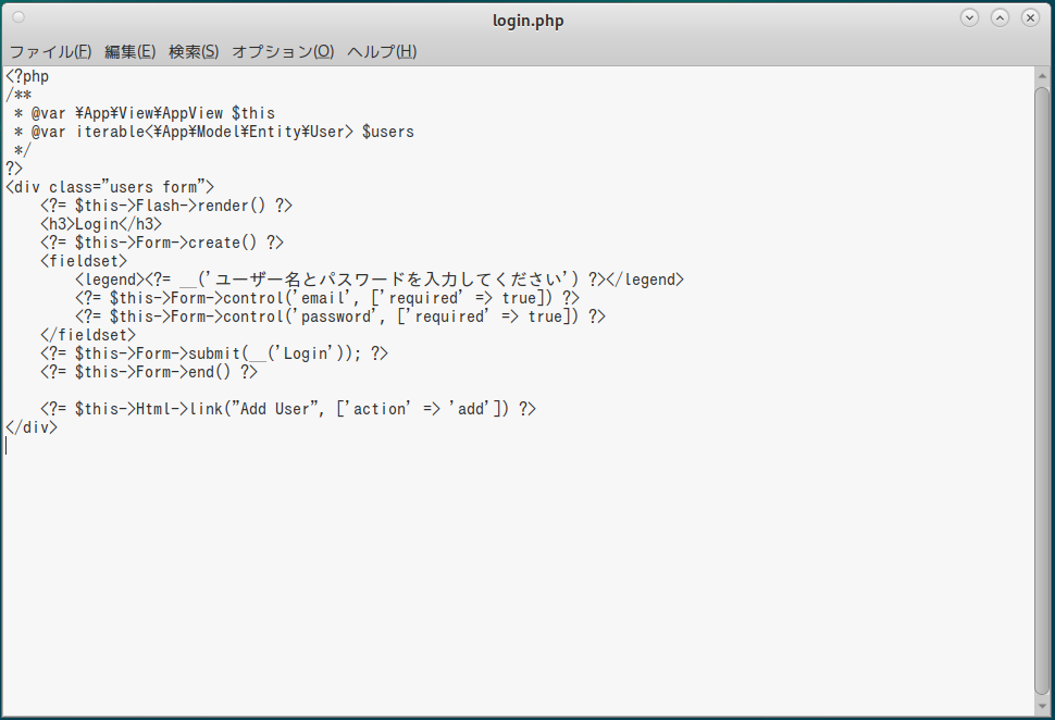 次は「src/Controller」の中にある「UsersController.php」に三つのメソッドを追加すれば良いんだね