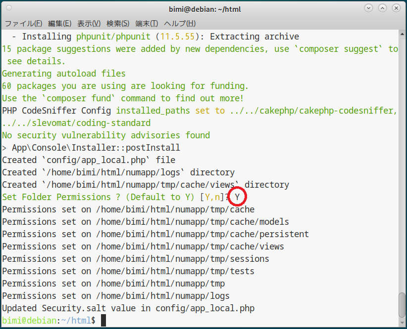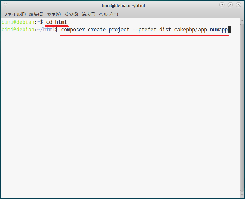 composer create-project --prefer-dist cakephp/app numapp[Enter] |