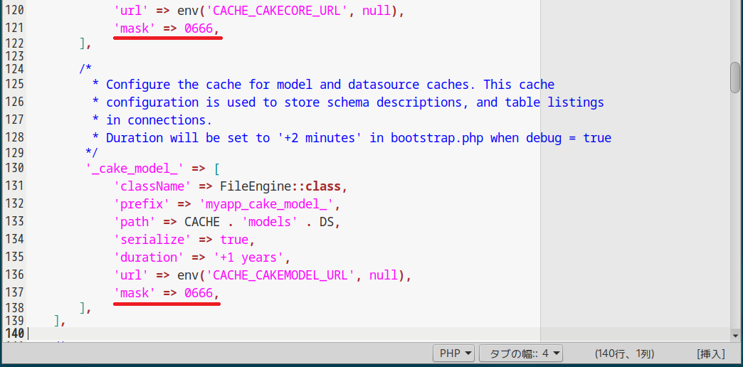 | 137 | - | 'mask' => 0666, | 追加 |