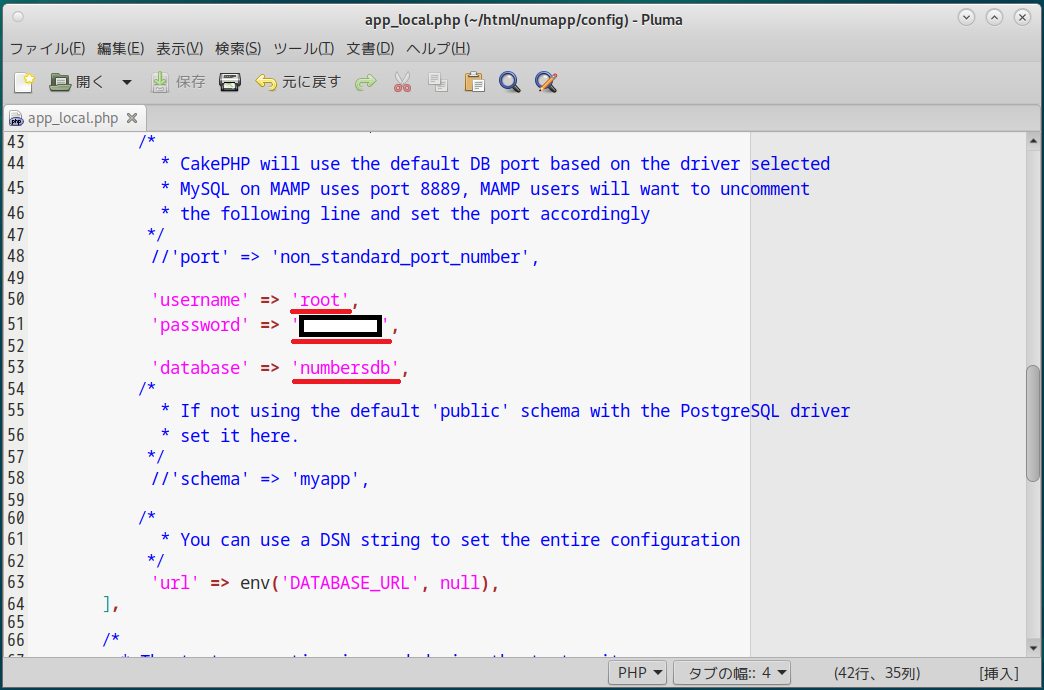 | 53 | my_app | numbersdb | 変更 |