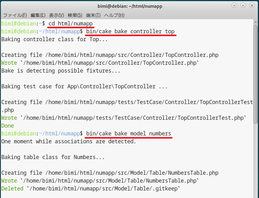 bin/cake bake controller top[Enter] bin/cake bake model numbers[Enter] |