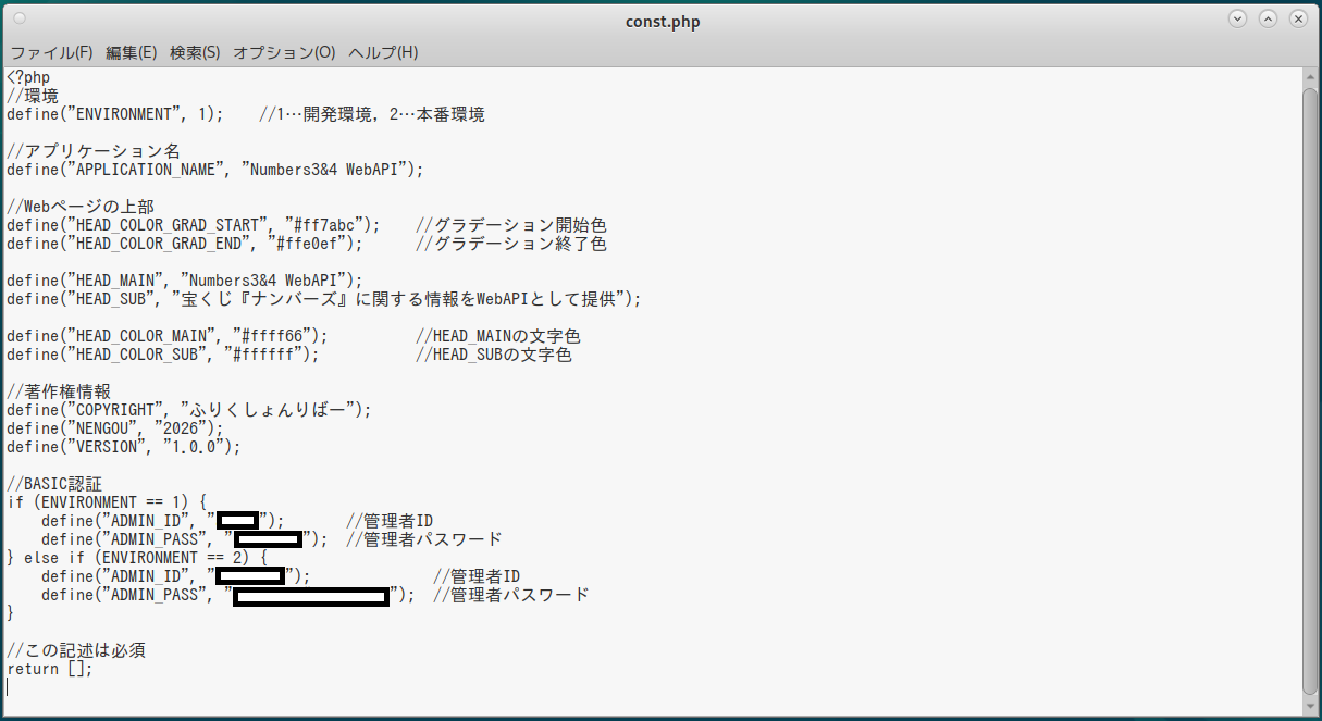 | 1.「config/const.php」をコピーして書き換え |