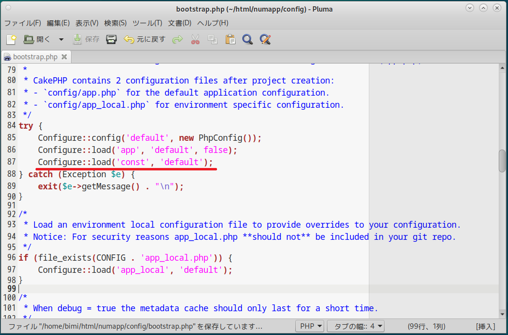 | 2.「config/bootstrap.php」の書き換え(「const.php」を読み込ませるように) |