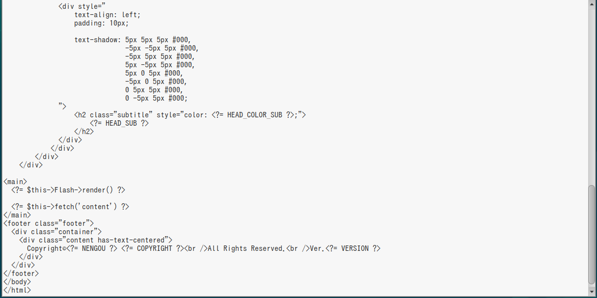 | 4.「templates/layout/default.php」をコピーして書き換え |