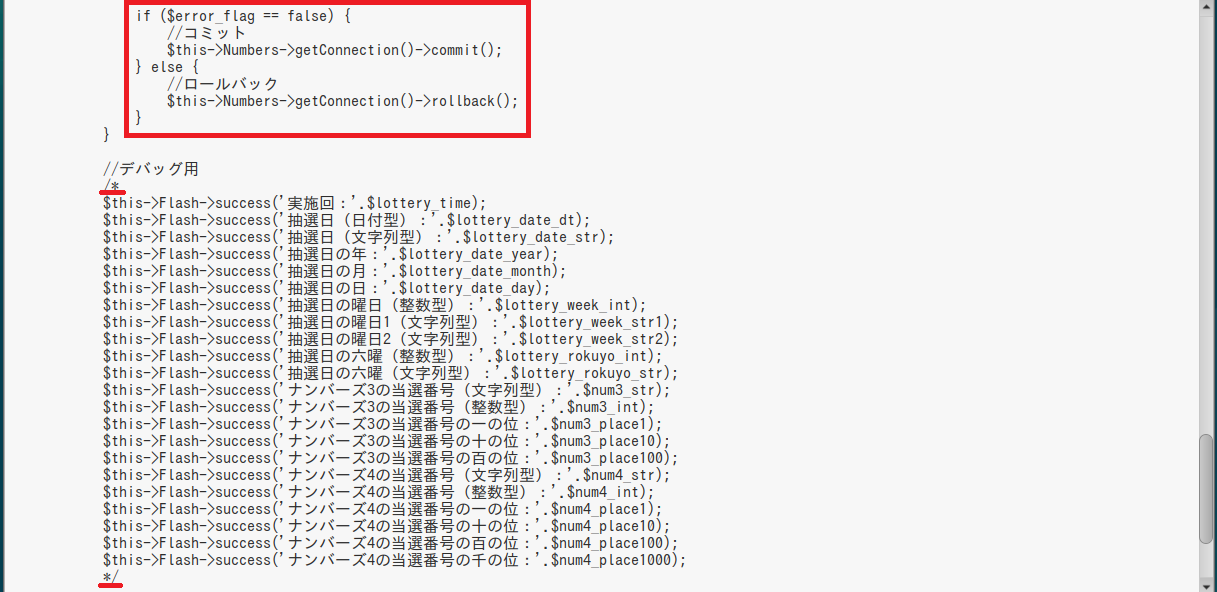 ついでに、前回書いたデバッグ用のフラッシュメッセージについても全てコメントアウトしておきますね~