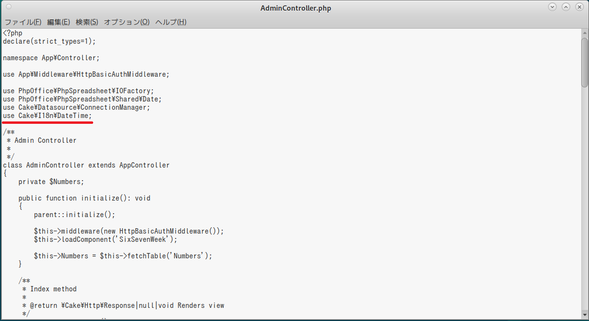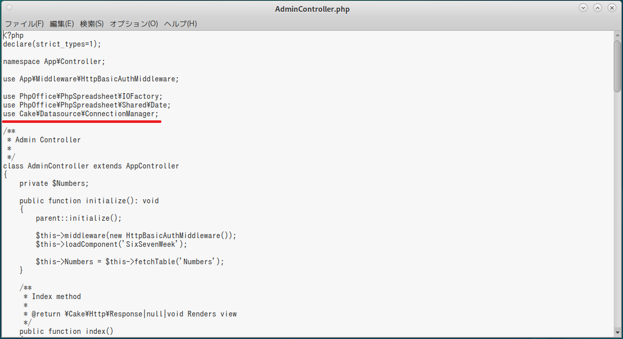 まずは「AdminController.php」の中で「Numbers」クラスを使えるようにしよう